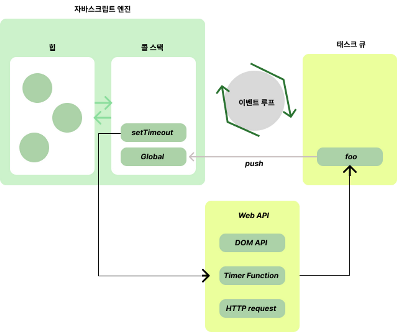 ๐ก setTimeout์ด๋ setInterval๊ณผ ๊ฐ์ ๋น๋๊ธฐ ํจ์์ ์ฝ๋ฐฑ ํจ์ ๋๋ ์ด๋ฒคํธ ํธ๋ค๋ฌ๊ฐ ์ผ์์ ์ผ๋ก ๋ณด๊ด๋๋ ์์ญ