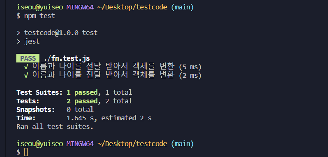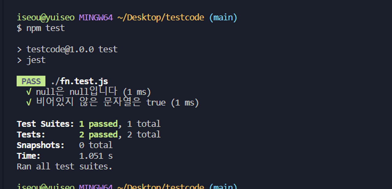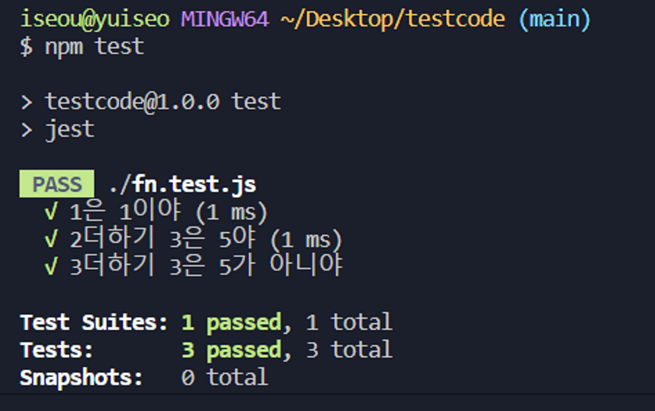 test('1์ 1์ด์ผ',()=>{