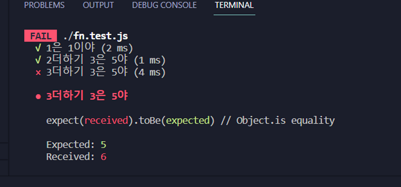 test('3๋ํ๊ธฐ 3์ 5๊ฐ ์๋์ผ',()=>{