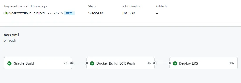 ๊ทธ ์ค CI ๊ณผ์ ์ค์์ ํ๋ก ํธ ํ๋ก์ ํธ ๋น๋ ์๊ฐ๊ณผ ECR PUSH ํ์์ด ๋๋ถ๋ถ์ ์ฐจ์งํจ์ ํ์ธ ํ ์ ์๋ค.