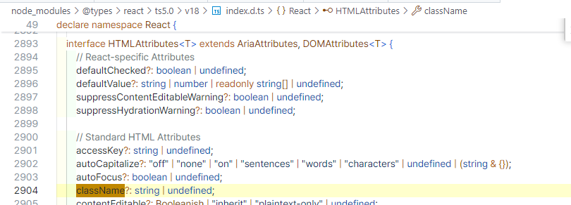 className ์ด HTMLAttributes<T> ๋ด๋ถ์ ํฌํจ๋์ด ์๋์ง ๊ฒ์ํ์๊ณ ์กด์ฌํ๊ณ ์์์ ํ์ธํ๋ค.
