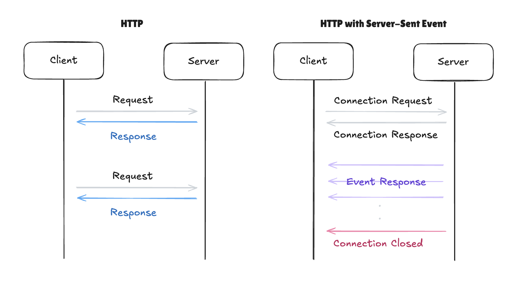 → ํด๋ผ์ด์ธํธ์์๋ eventSource.addEventListener('update', handler)๋ก ์ฒ๋ฆฌ