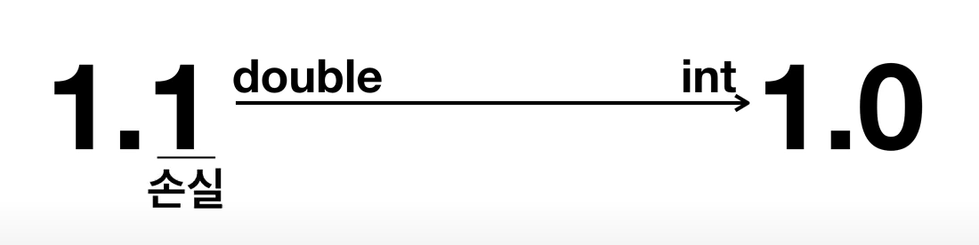 int e = (int) 1.1; //๊ฐ์ ๋ก int๋ก ๋ณํ