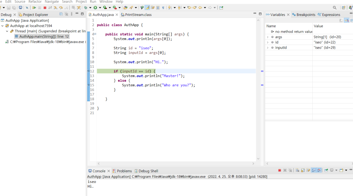 if(inputId.equals(id) && inputPass.equals(pass)) {