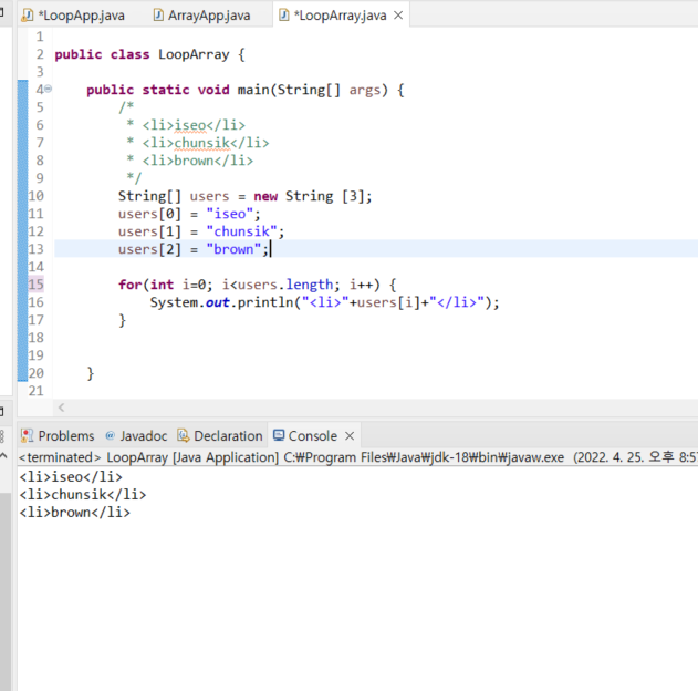 | [생활코딩] Java - 제어문 (비교연산자) (0) | 2022.04.25 |