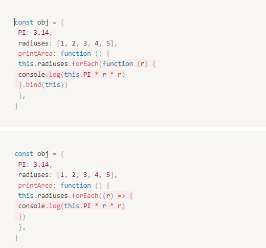 - ์ด ์ฝ๋ฐฑํจ์ ๋ด๋ถ์์ this.PI์ ์ ๊ทผํ๊ธฐ ์ํด์ ํจ์๊ฐ์ฒด.bind(this) ๋ฉ์๋๋ฅผ ์ฌ์ฉ.